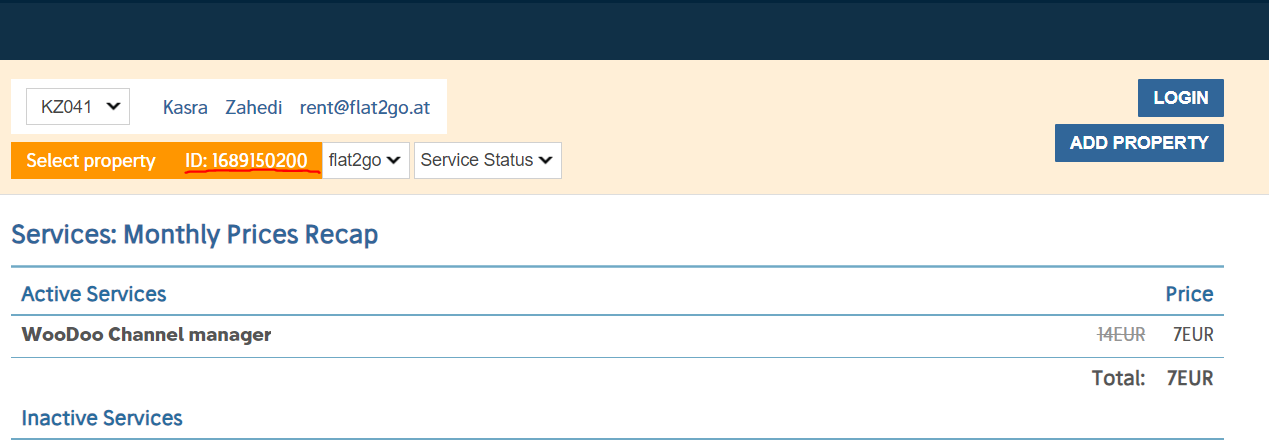 Hierfür muss unter Einstellungen/Channel-Manager Wubook hinzugefügt werden und dann der Unterkunftscode (zwei Buchstaben und zwei Zahlen) sowie die Property ID von Wubook hinzugefügt werden. Diese ID findet man auf der Wubook-Seite wo auch der „Login“-Knopf ist.