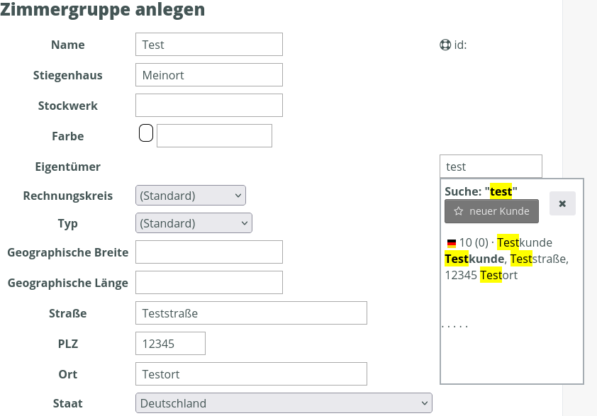 Füllen Sie zumindest den Namen und die Adresse aus, wählen Sie bei „Eigentümer“ den Eigentümer aus.