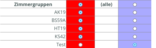 Wenn der Benutzer Zugriff auf alle Zimmergruppen haben soll, wählen Sie den Zugriff bei „alle“ aus und klicken Sie speichern, es verschwinden alle anderen Zimmergruppen: