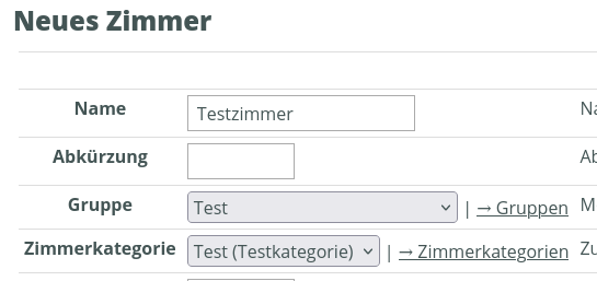 Klicken Sie dort auf „Zimmer anlegen“, um ein neues Zimmer anzulegen. Es erscheinen die Zimmereinstellungen.